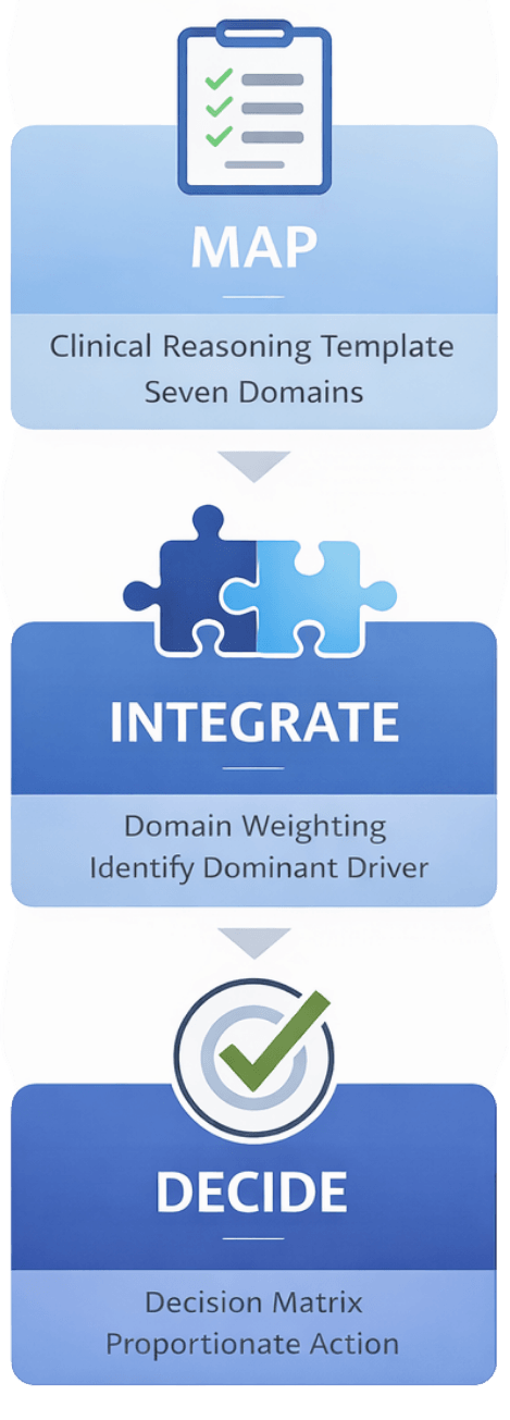 It introduces the structure that underpins everything we teach and gives you a clearer way to approach clinical decision-making immediately.